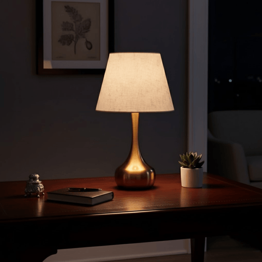 Moderne tafellamp met gedraaide lichtlijn en kap
