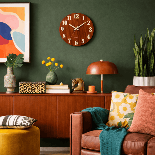 Houten wandklok met rustige uitstraling voor het interieur